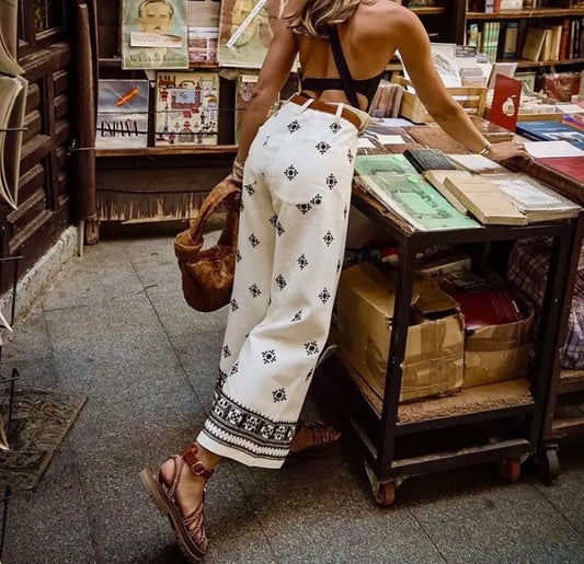 Women’s High-Waist Wide-Leg Printed Pants – Casual Loose Trousers