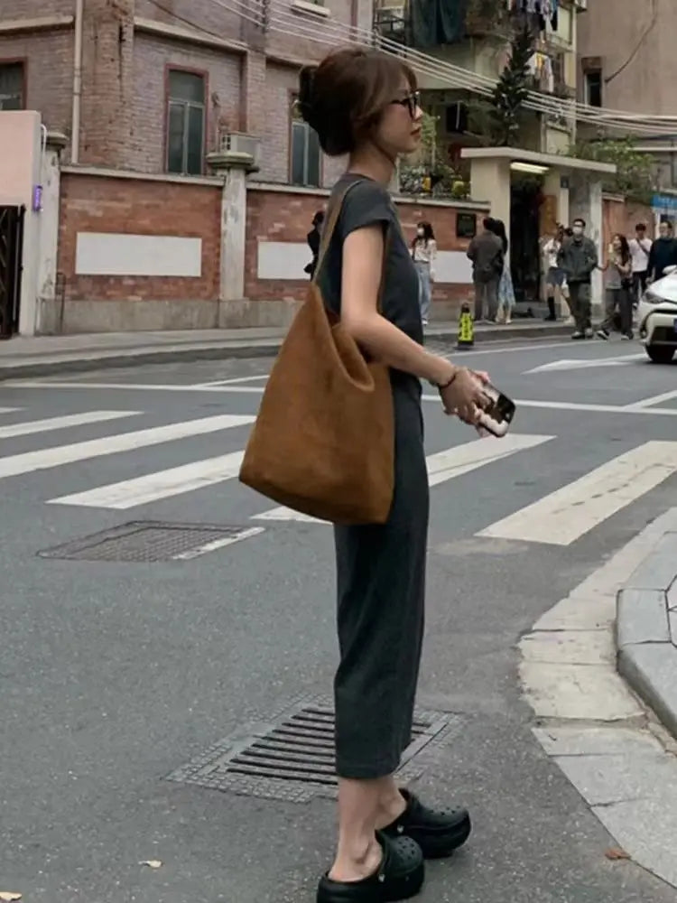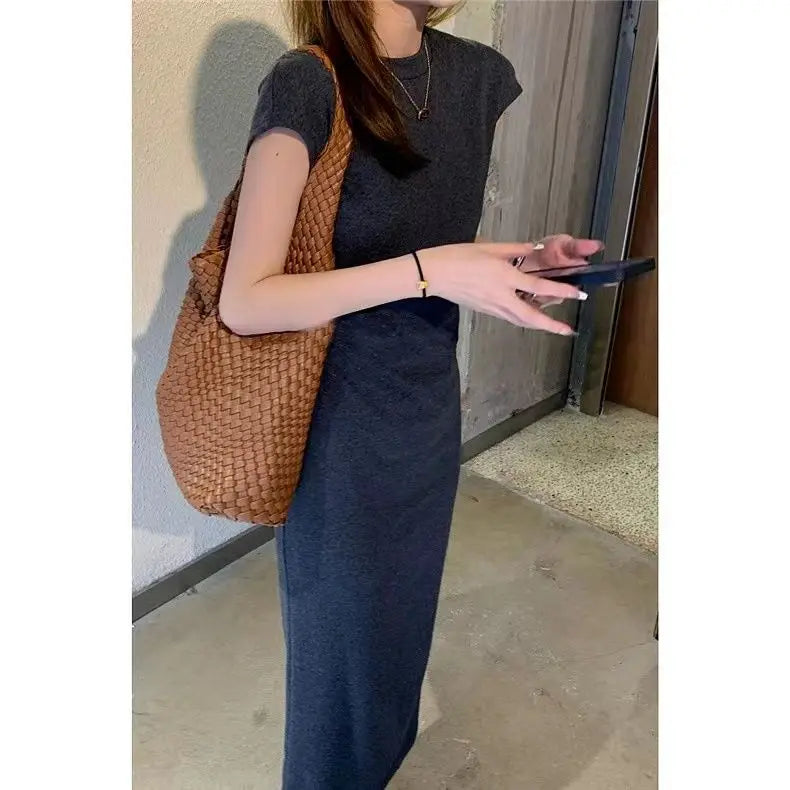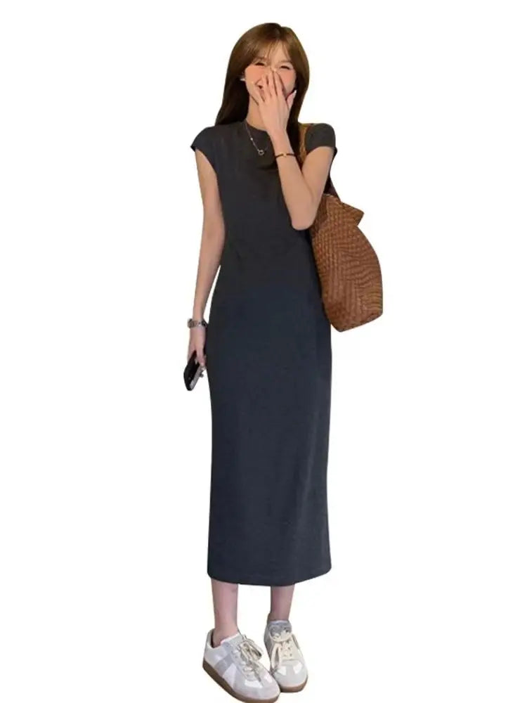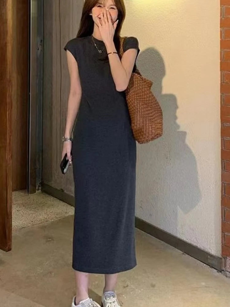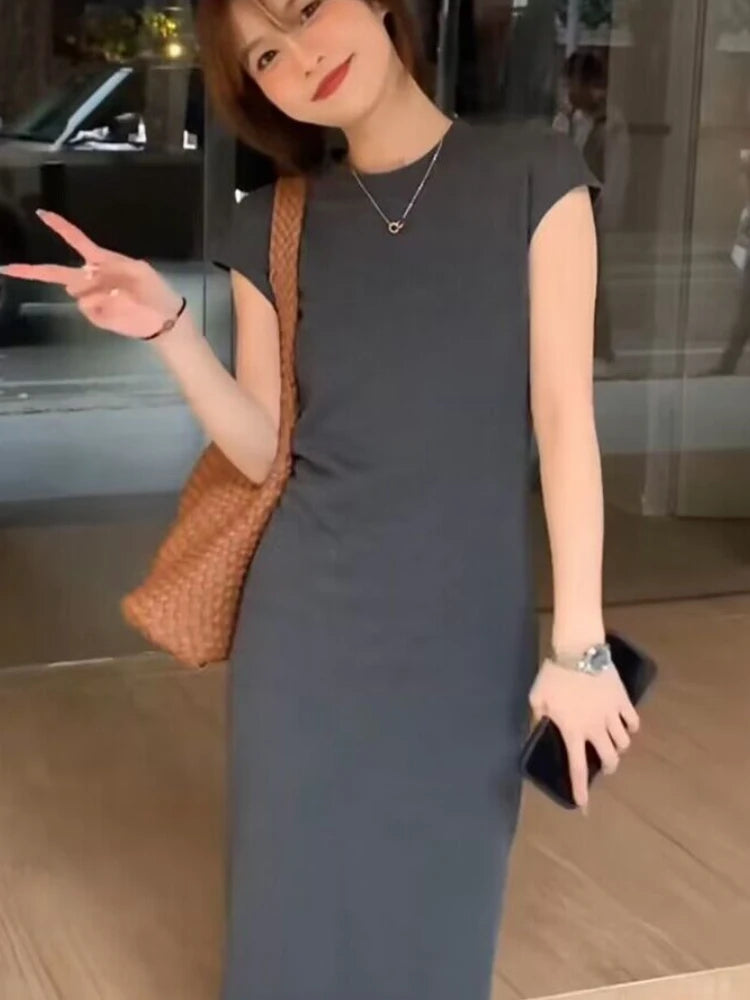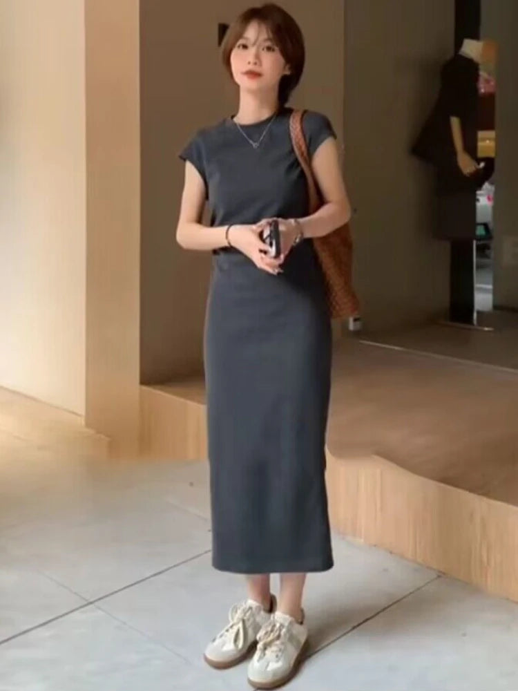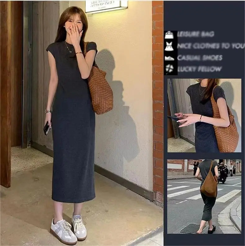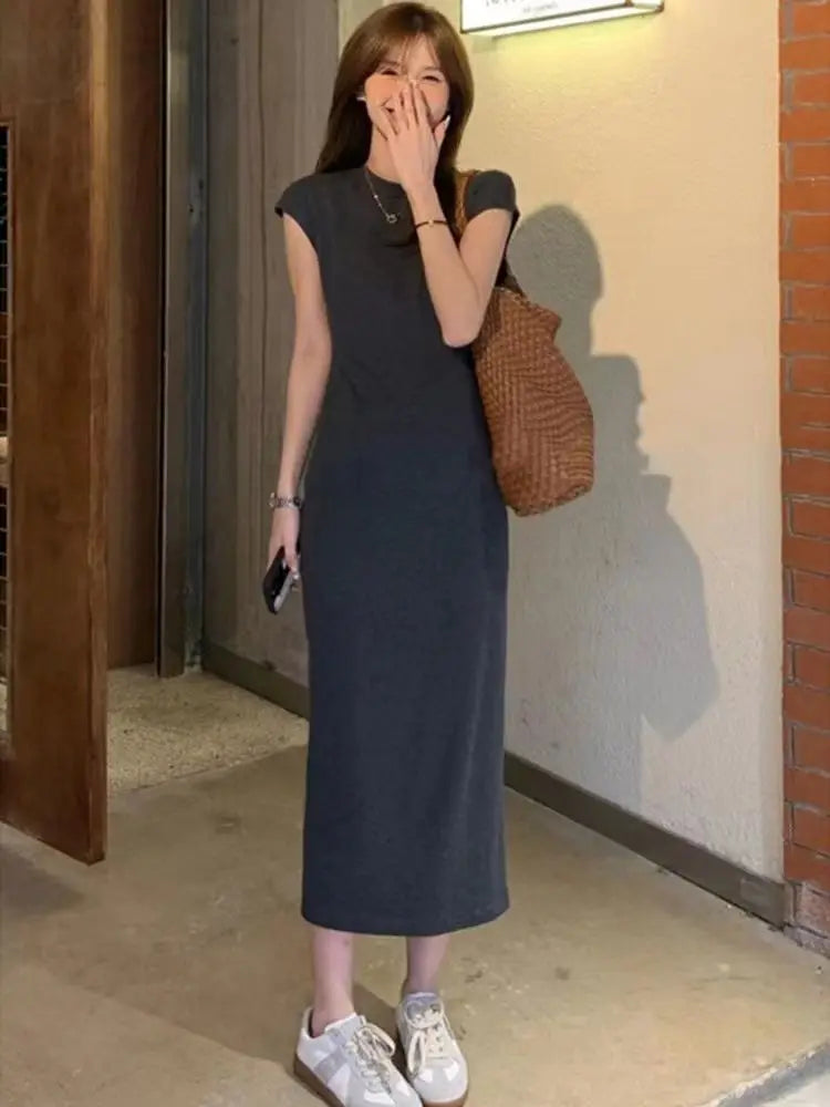 Women’s Simple Casual Dress – Elegant Slim Summer Streetwear, Korean Vintage Style