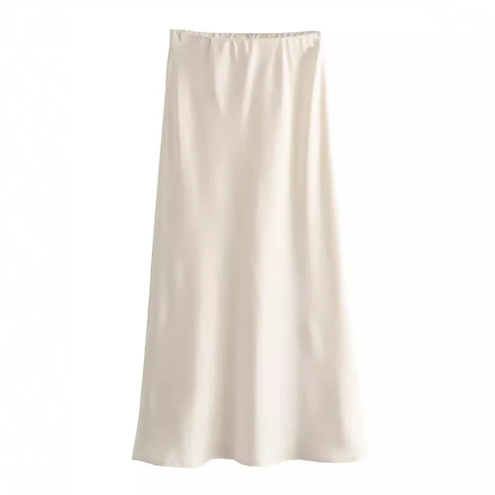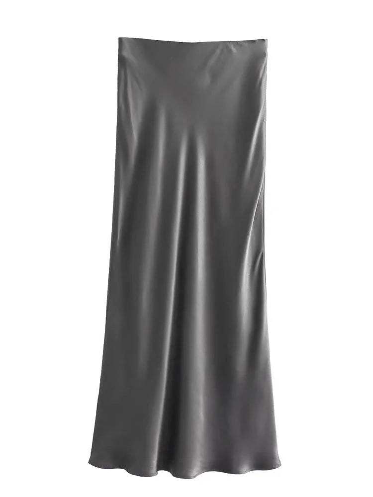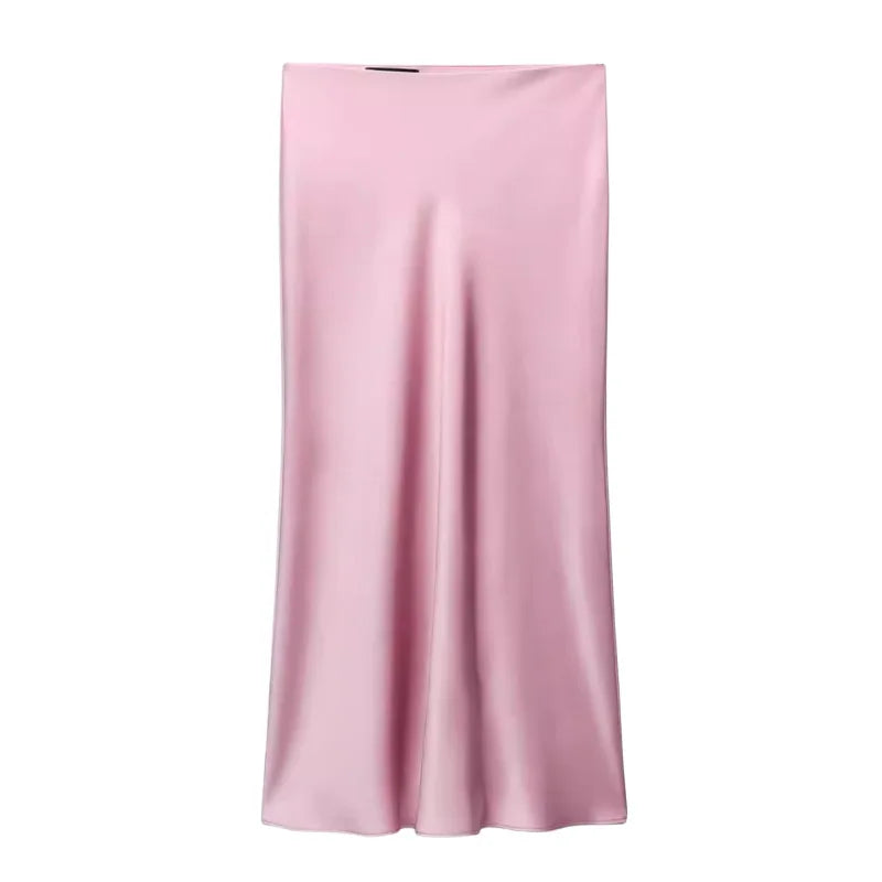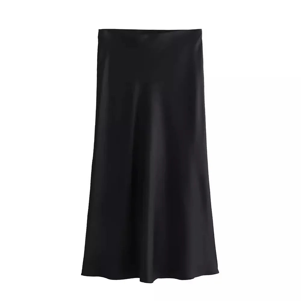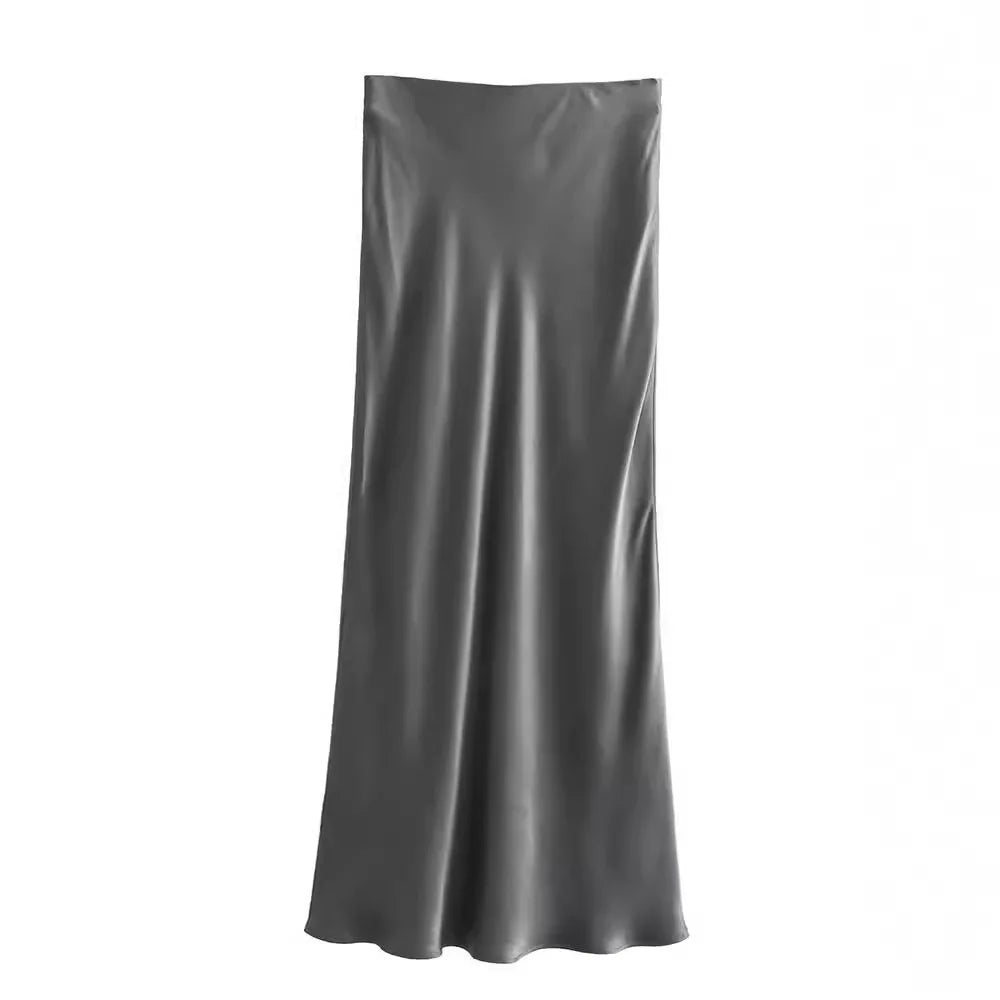Women’s Satin High-Waist Midi Skirt