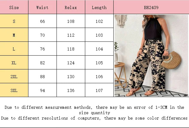 Women’s Casual Wide-Leg Printed Pants with Elastic Waist