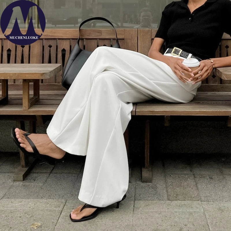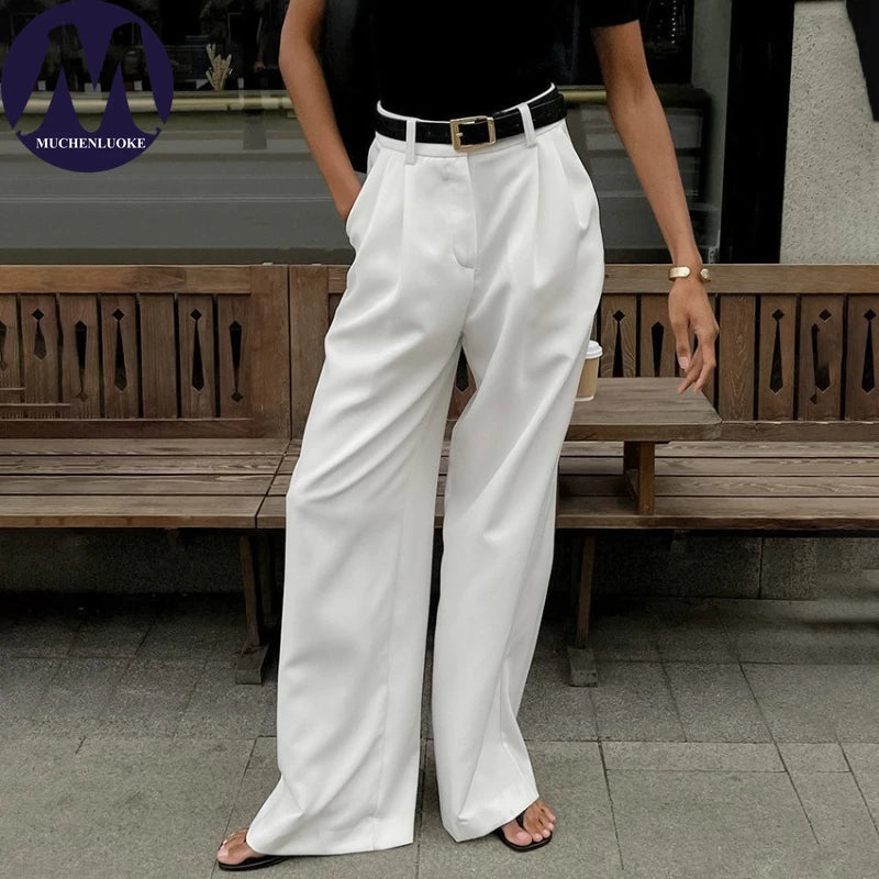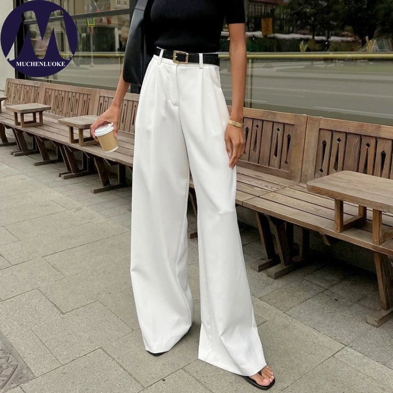 Women’s High-Waist Straight Suit Pants – Elegant Casual Loose Trousers